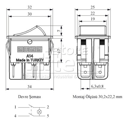 A21B1K11 – Interruptor Rojo con Iluminación 3 Terminales Emas Perú