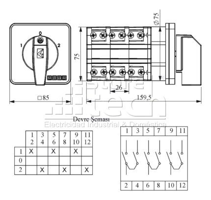 PSA080KD334S – EMAS – INTERRUPTOR DE LEVAS 3X80A 3 POSICIONES 0 1 2