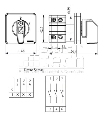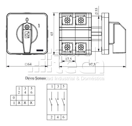 PSA032AK331S – EMAS INTERRUPTOR 32A 3 POLOS ON OFF 60 GRADOS
