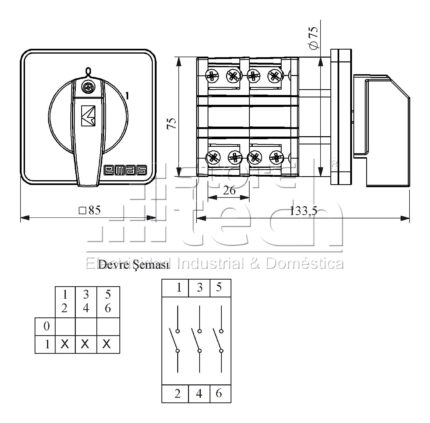 PSA080AK331S EMAS – INTERRUPTOR DE LEVAS 3X80A DE 2 POSICIONES 0 Y 1